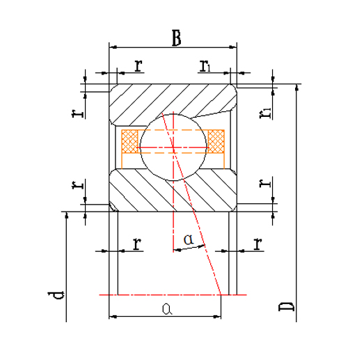 PDF Download Inquiry Bearing model External dimensions (mm) Rated load (kN) Contact angle (°) Position of action point (mm) Extreme speed (r/min) Mass (kg) ≈